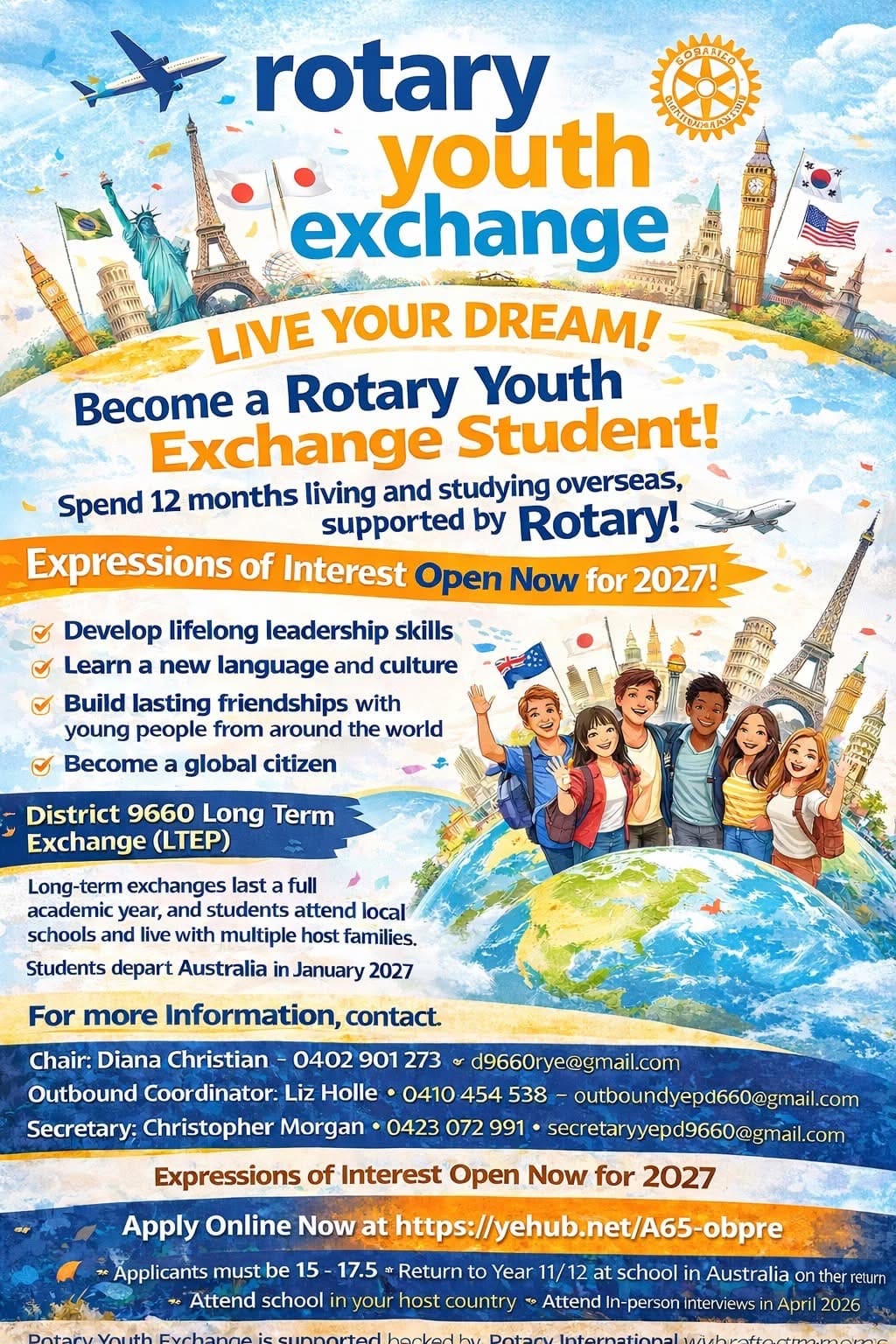Expressions of Interest are now welcomed for Rotary Youth Exchange 2027.